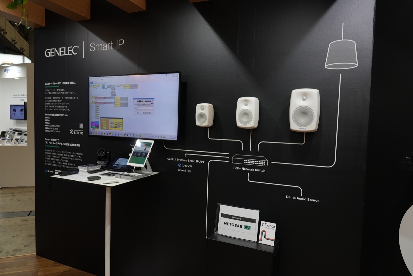 Q-SYSオートメーションシステムとの強力な連携による「Smart IP」スピーカーも展示。設備音響、特に店舗向け・設備向けの分野で大きな注目を集める驚異のシンプル設計、それを支える高度な技術が展示されていました。