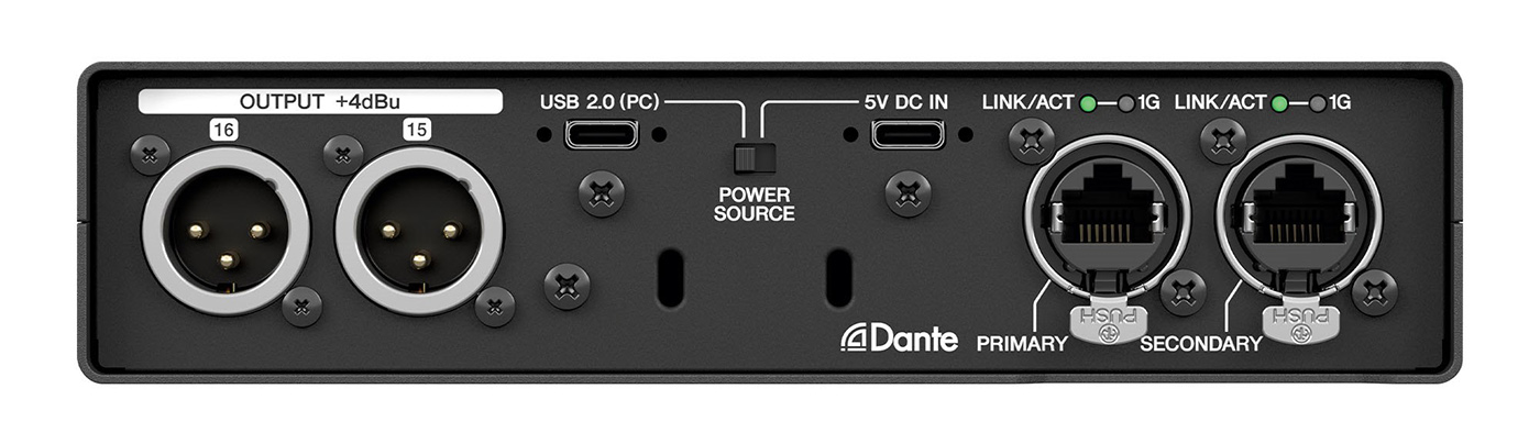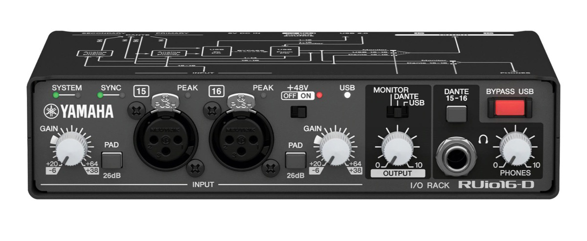 RUio16-Dは、Dante、USB、アナログといった豊富な入出力端子を備えたオーディオインターフェースです。