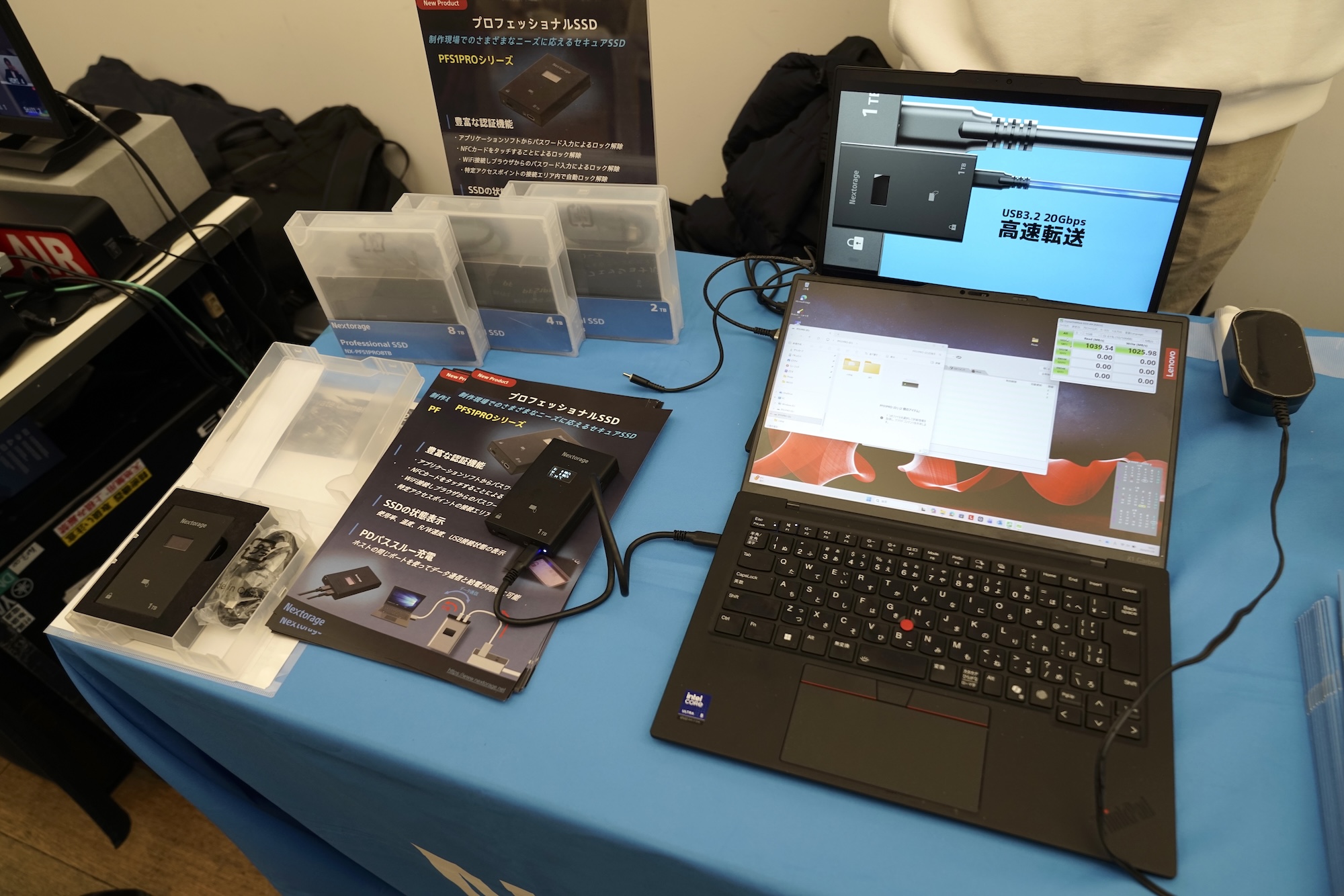NextorageといえばCFカードやモニターのイメージが強いが、今回気になったのはSSD。このSSDにはロック機能がついていて、本体に表示されるQRコードを登録済みのスマホで読み取るとロック解除ができる仕組みになっている。さらに、登録したWi-Fi環境内でしか使えない設定も可能で、機密データの管理にはかなり安心感がある。映像制作だけでなく、セキュリティ重視の現場でも活躍しそうだ。