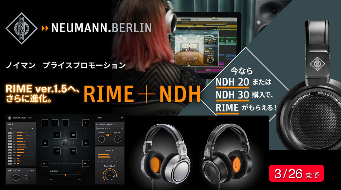 • Neumann RIME Ver.1.5アップデートを記念し、NDH 20 / NDH 30購入でRIMEを無料プレゼントするプライスプロモーションがスタート!