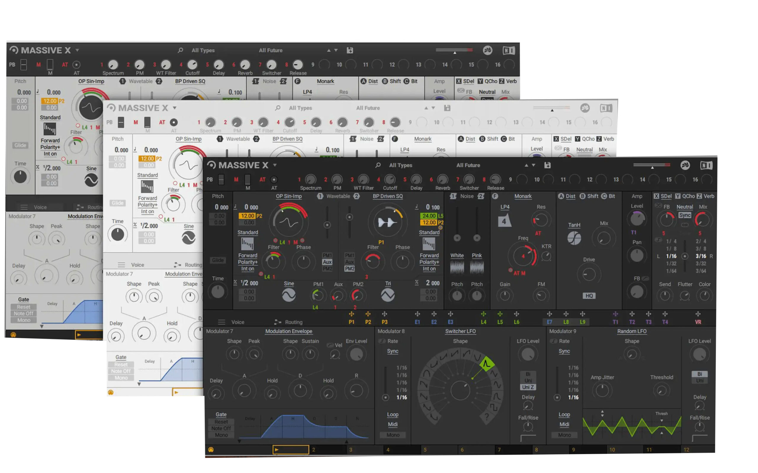 Massive Xは、複雑なサウンドデザインを可能にするクリアな音質と、極めて高い操作性を兼ね備えた次世代のフラッグシップシンセサイザーです。