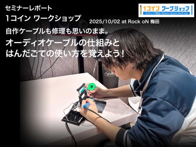 2025年10月2日(木)にRock oN 梅田で開催されたワンコインワークショップ「自作ケーブルも修理も思いのまま。オーディオケーブルの仕組みとはんだごての使い方を覚えよう!」の模様をレポートします。はんだごてを使った事がない方に向けた簡単で優しい内容になってますので是非一読いただき、ケーブル自作に挑戦してみませんか?
