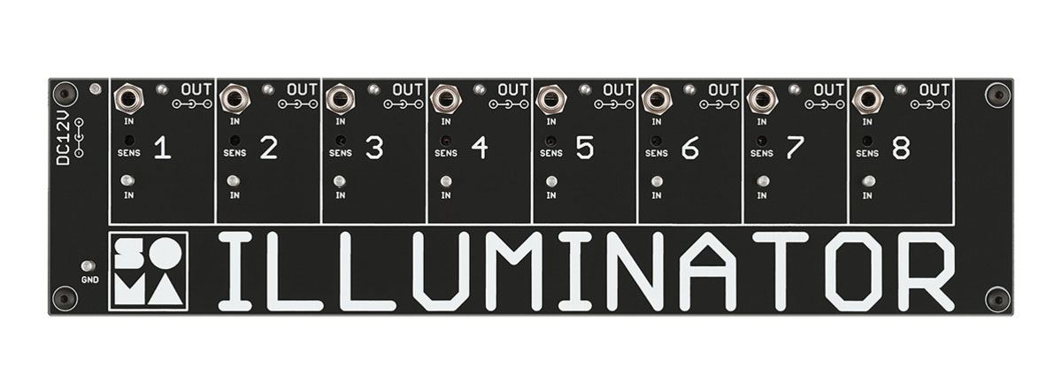 ILLUMINATORは、ユーロラックからあるいは他のアナログCV信号でLEDやLEDテープライトを発光させる8チャンネル・コンバーターです。