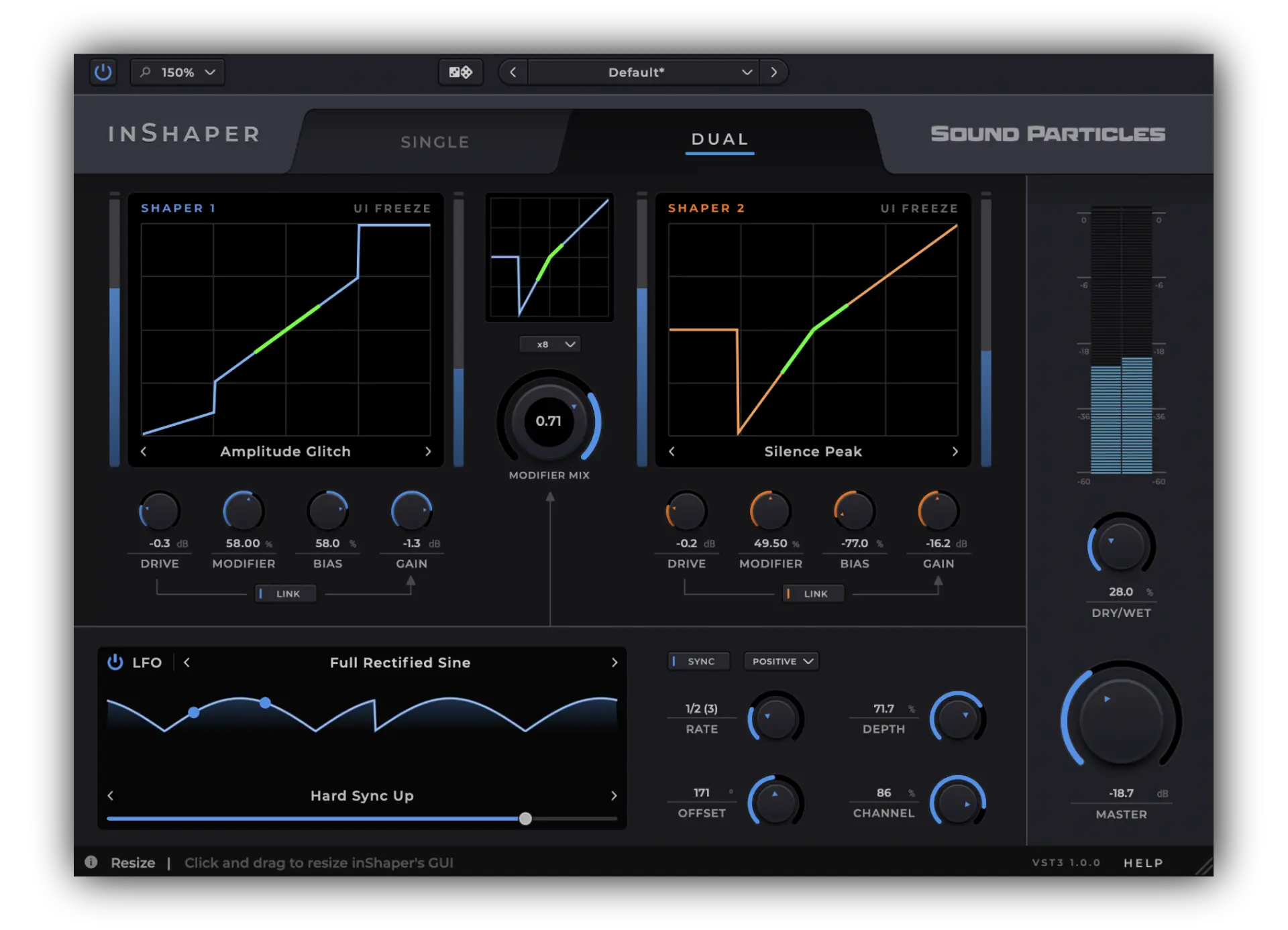inShaperは声波形を表現豊かな手法でシェイプ/成形することにより、クリエイティブなディストーションが、柔軟で直感的かつ精細なエフェクト・プラグインとして実現しました。