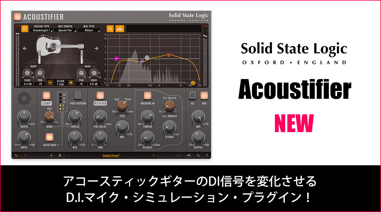 Solid State Logicが、アコースティックギターのDI信号をスタジオ品質の録音へと変化させるパワフルな新しいD.I.マイク・シミュレーション・プラグイン「Acoustifier」を発売しました!